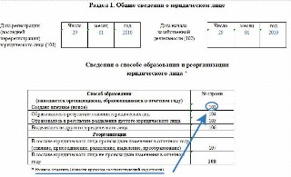 Если юрлицо было образовано не в отчетном году, то поля 103–108 заполнять не нужно. В противном случае в них нужно указать сведения о способе образования юрлица. Это может быть как новое предприятие, так и компания, которая получилась в результате реорганизации, слияния или выделения.
