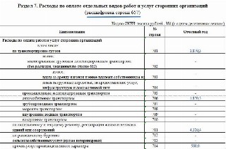 - Разделом 7, где отражаются расходы, связанные с заказом определенных услуг у сторонних хозяйствующих субъектов.