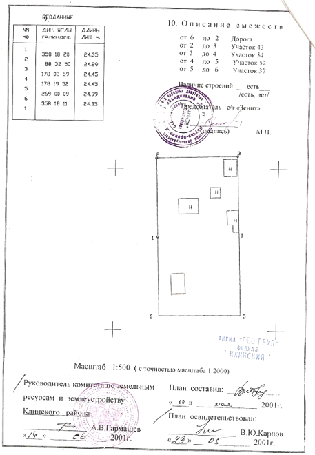 - Межевание земель было проведено до 2001 года.