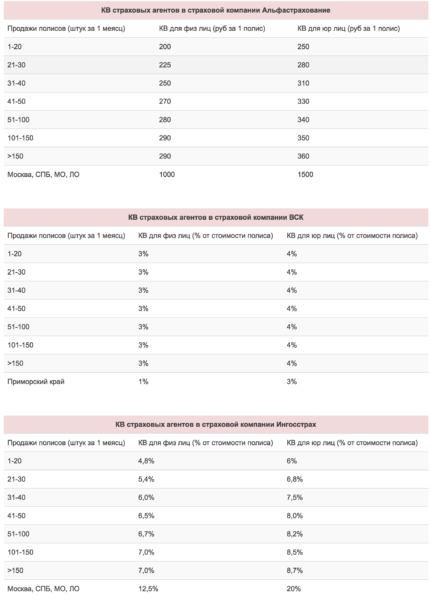 - Комиссионные. Брокер получает оплату непосредственно от клиента – величина отчислений может достигать 50 % стоимости полиса. Агент получает выплаты от СК – до 30– 40 %.