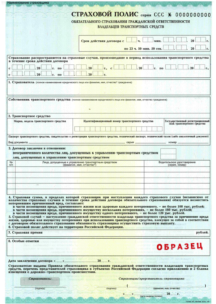 - на лицевой стороне страхового полиса нанесена микросетка зеленовато-голубого оттенка по всему формату бланка